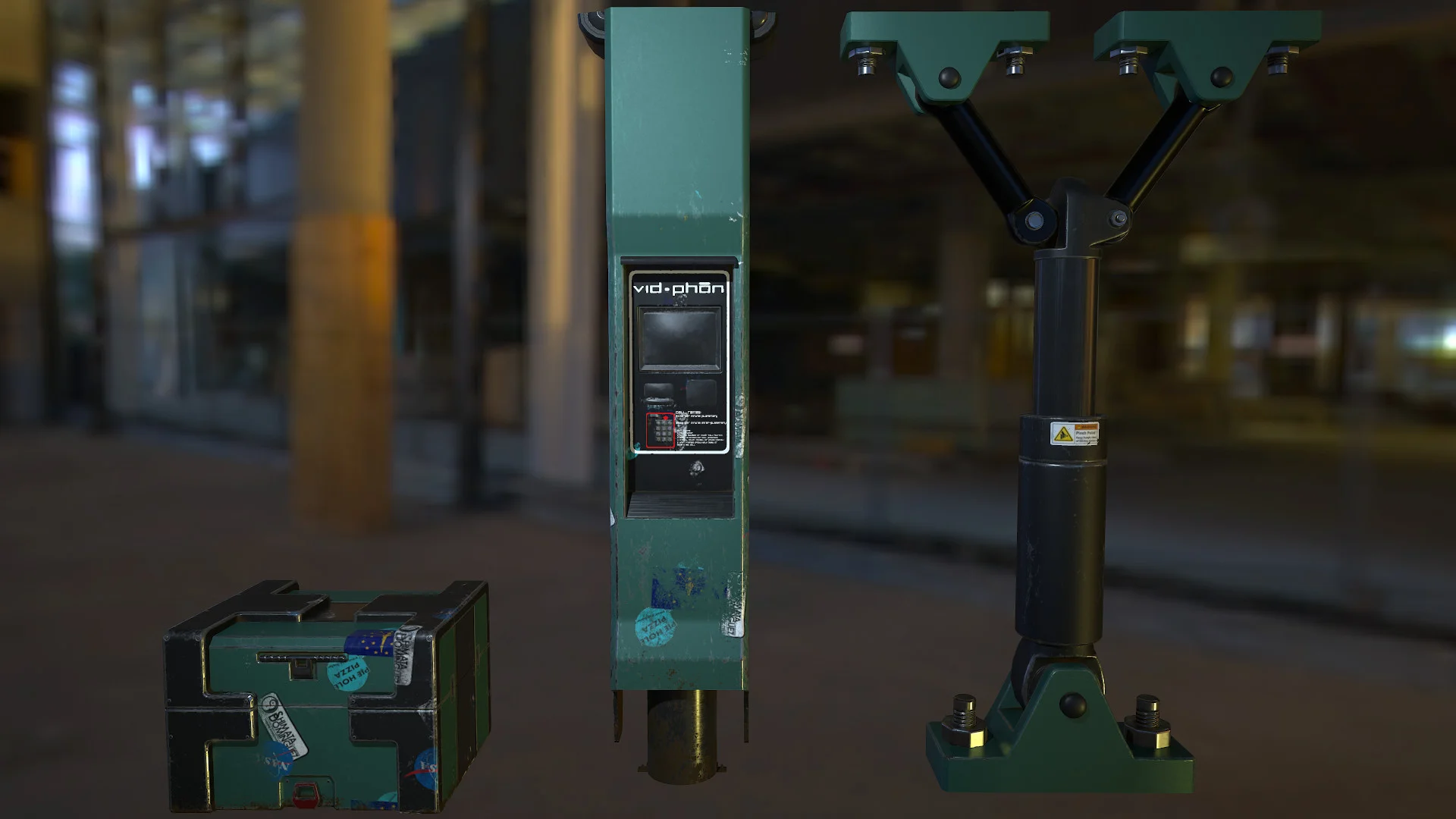 All 3 models seen here have materials created from one base multi-material. I created a multi-material that, when the base baked textures and the geometry is changed, the rendered textures procedurally adapt to the new information; correctly placing wear & tear, material assignments based on IDs, dirt, dust, stickers, etc.